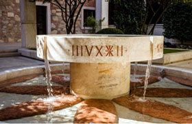 rovásra Luca Gyula készítette, míg a szökőkútra Pap Lajos kőfaragó rótta